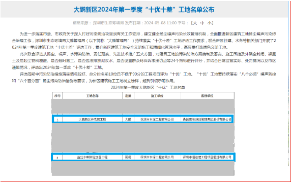 東深工程大鵬新區(qū)養(yǎng)老院項(xiàng)目再次斬獲2024年一季度質(zhì)量安全綜合評(píng)估第一名